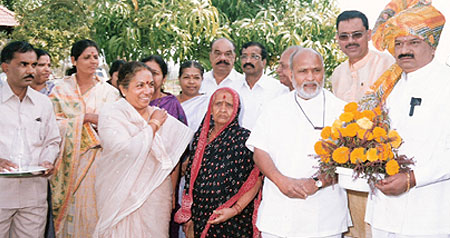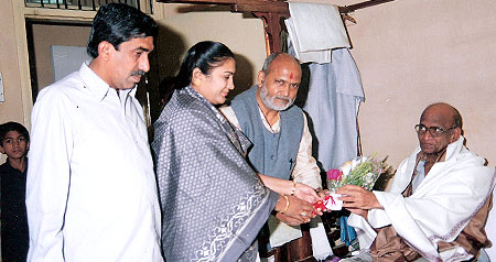 Dr. VNP’s Mother felicitating Mr. Patangrao Kadam