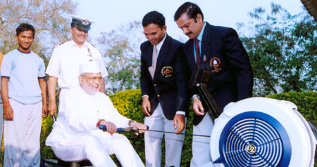 Dr. VNP. taking a trial on a new machine at Boat Club.