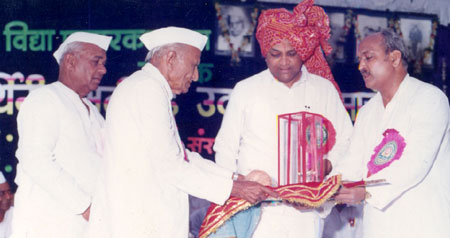 Dr. VNP’s Mother felicitating Mr. Patangrao Kadam
